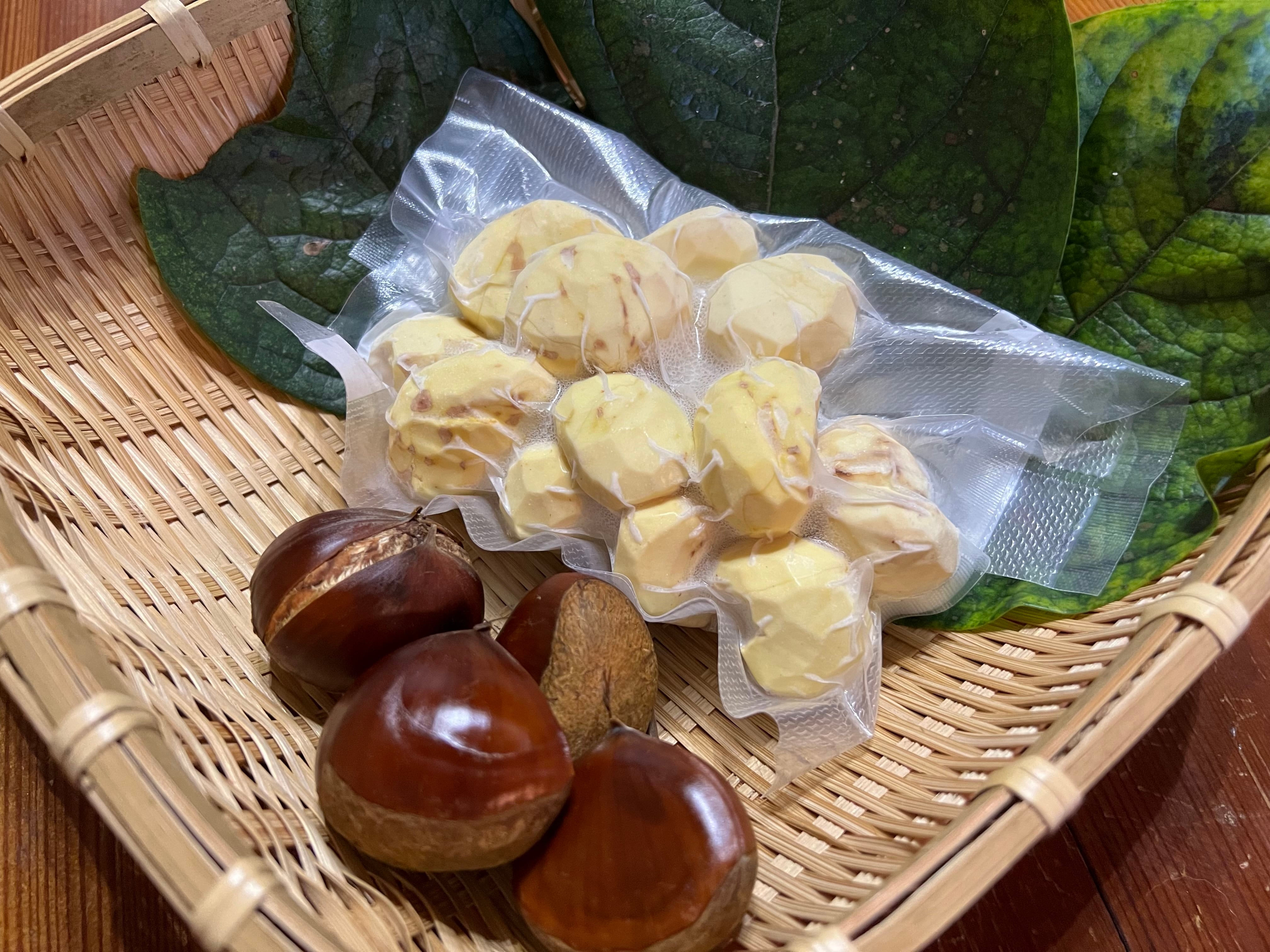 大きな栗も剥き栗にしていますから、加工用の栗ではないゴロゴロした栗を楽しめます。