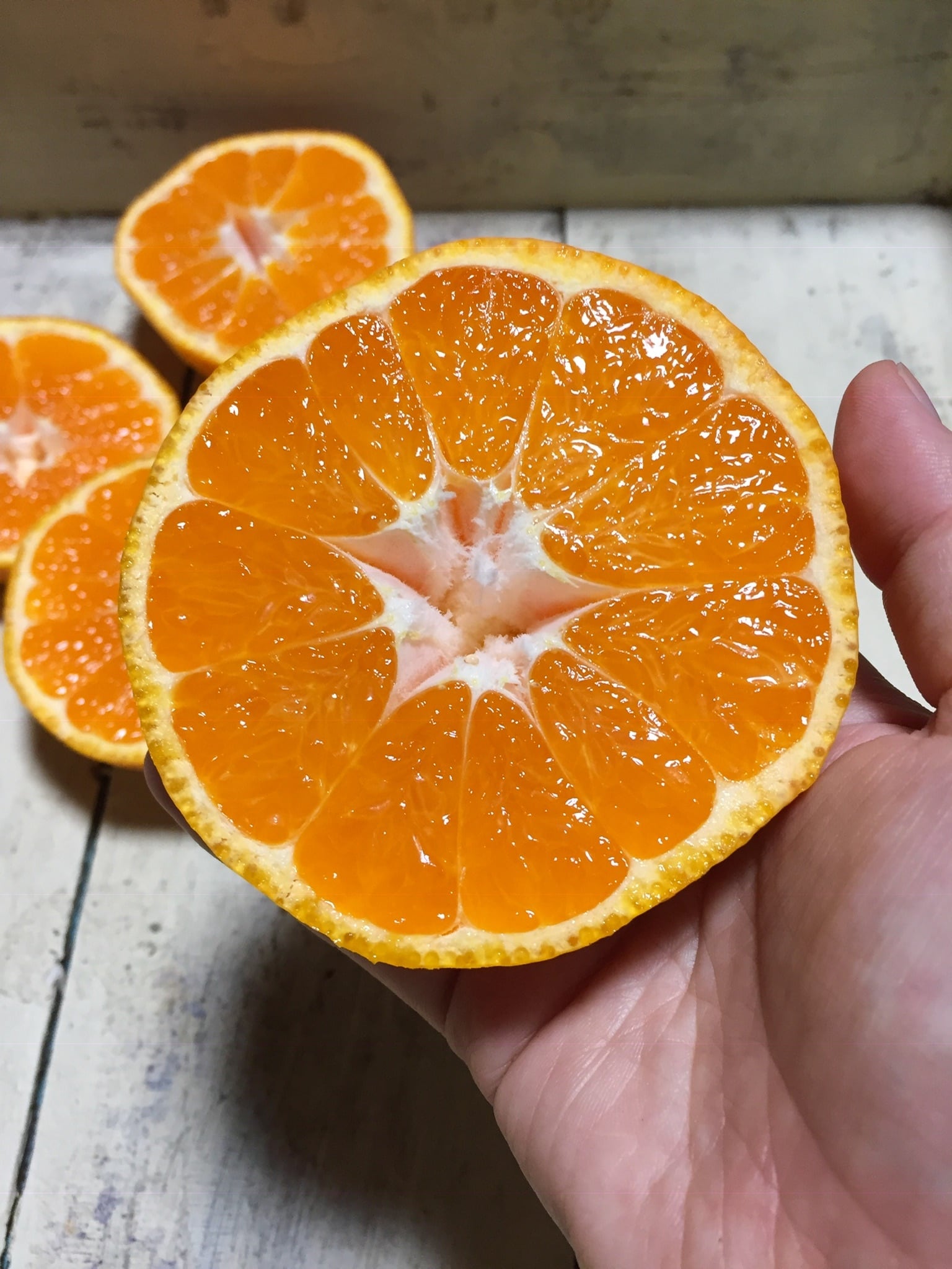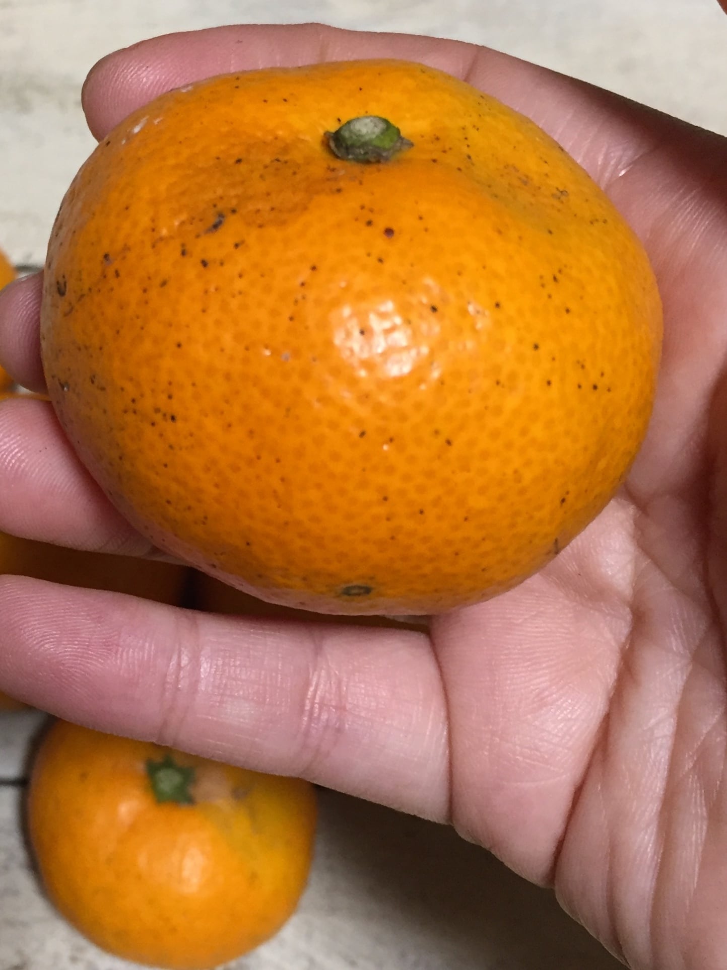 農薬不使用のためどうしても皮にキズやシミがあります。これは青い小さなみかんの時に主に虫に齧られた跡や酷暑での日焼けも影響しています。その点をご理解いただいた方のみご注文ください。